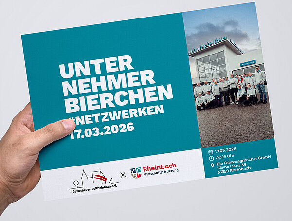 Am Dienstag, den 17. März 2026 um 19:00 Uhr, laden wir Sie herzlich zum nächsten Unternehmerbierchen in Kooperation mit dem Gewerbeverein Rheinbach ein. Dieses Mal sind wir zu Gast bei der Die Fahrzeugmacher GmbH, Kleine Heeg 38, 53359 Rheinbach.